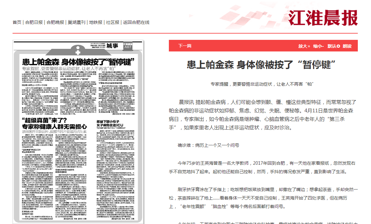 江淮晨报:患上帕金森 身体像被按了“暂停键”
