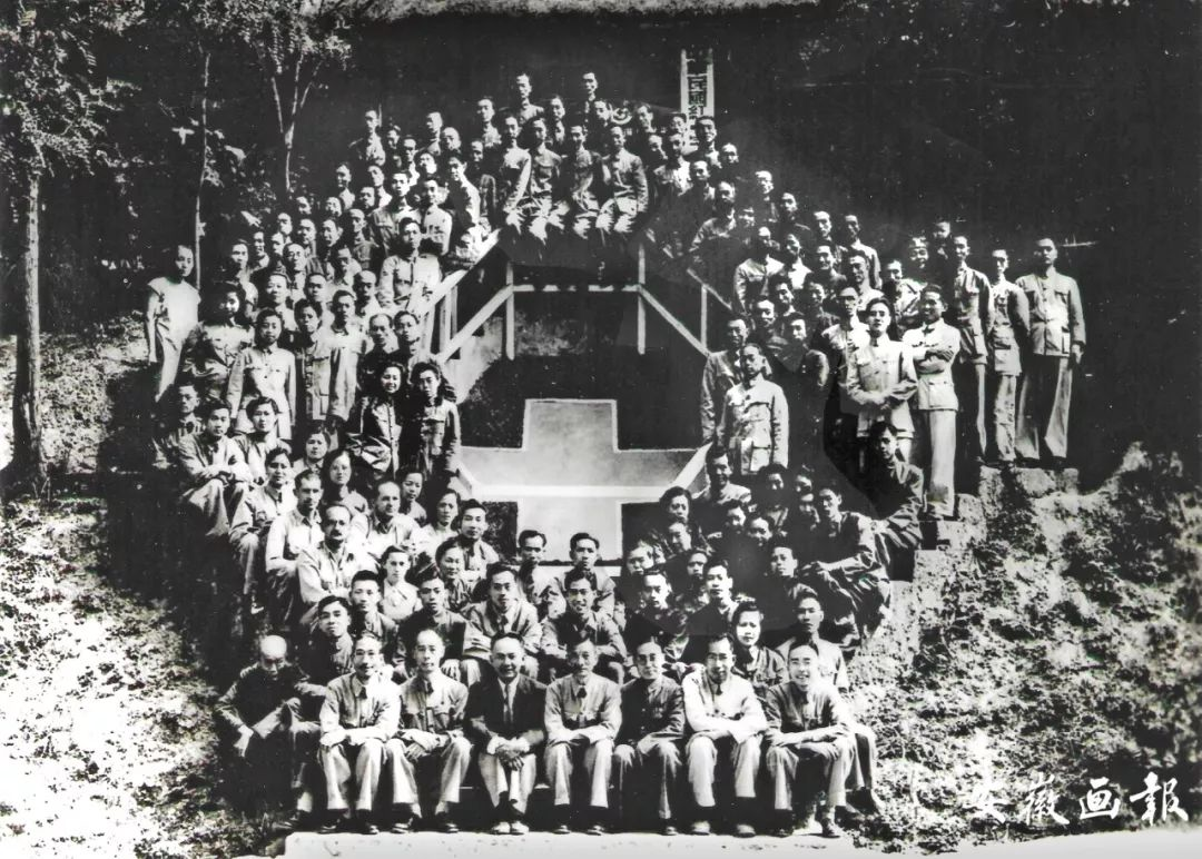1945年抗日战争胜利,中国红十字会救护总队在贵阳图云关总部前的合影(第一排中央为汤蠡舟)