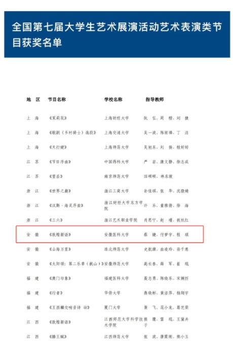 近期,教育部公布全国第七届大学生艺术展演活动各项目评选结果,我校大学生仁心民乐团作品《敦煌新语》获艺术表演器乐类二等奖,是我校民乐类节目最好成绩。