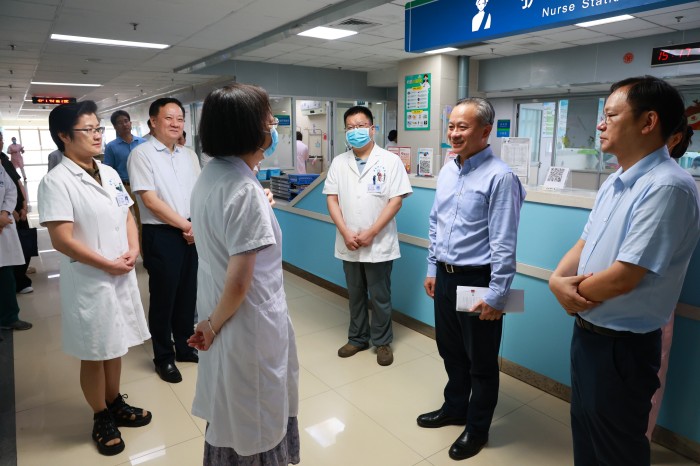 8月23日下午,校长翁建平一行到第二附属医院,实地参观调研医院国际医疗部、药物临床试验研究中心、儿科血液肿瘤科等地,并召开专题调研座谈会,听取医院推进高质量发展相关工作情况。