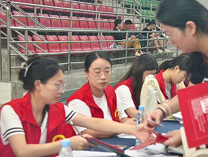 校园内,“欢迎新同学”的海报和标语随处可见,迎新氛围浓厚;各项工作有条不紊,迎新现场热闹非凡。研究生学院和各培养单位组成迎新团队,积极细致地为新生解困答疑,引导帮助其完成报到各项手续;学生志愿者活跃在校园各处,为新生和家长提供方便快捷、暖心周到的服务。学校还特别为报到新生家庭开辟专用车道,方便新生将行李运送至宿舍楼下。