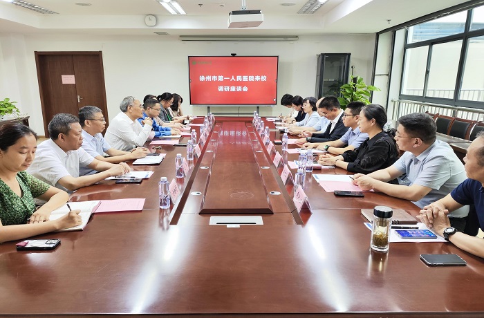 9月26日下午,徐州市第一人民医院党委书记丁继存一行来校交流座谈。校党委常委、副校长余永强主持座谈会。