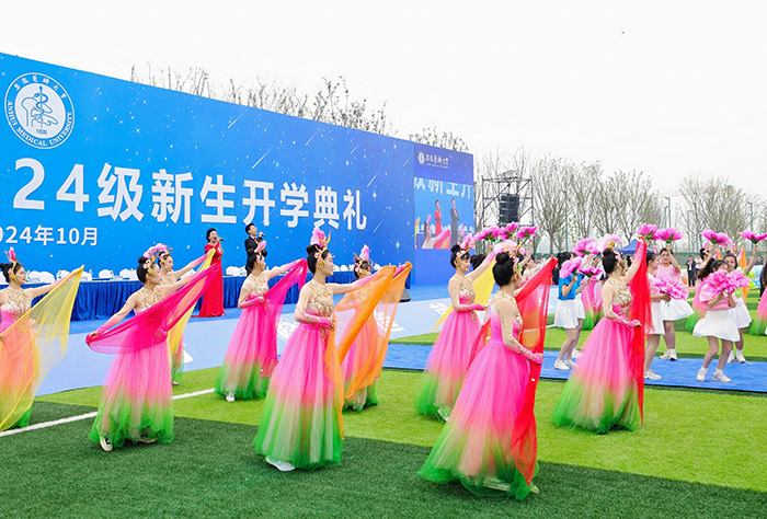 典礼开始前,来自各学院的师生和附属小学的小朋友带来了精彩的歌舞表演,既表达了对新同学们的热忱欢迎,也展现了新时代安医人的精神风貌。
