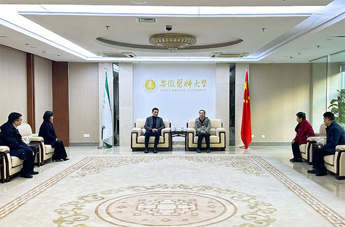 12月5日下午,农工党安徽省委会主委、中国科学院院士、中国科学技术大学副校长杨金龙,农工党安徽省委会专职副主委黄珍等一行3人来我校,走访农工党安医大基层委。校党委书记王琦在座谈会前会见杨金龙一行,双方进行亲切交谈。校党委常委、统战部部长顾秀平参加活动,农工党安医大基层委主委、校科技产业处处长王华主持座谈会。