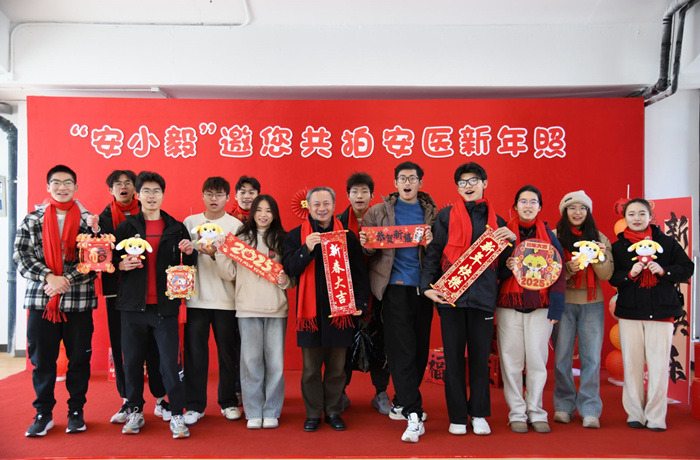翁建平现场察看了教室、“青年之家”、“一站式”学生社区等学生学习、生活和活动场所,了解学生复习迎考和期末考试组织情况,听取团学活动开展情况介绍,并与学子一同参加“共拍安医新年照”活动。
