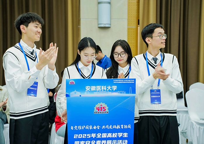 4月12日至13日,2025年全国高校学生国家安全素养展示活动在吉林大学举行。由我校第二临床医学院陈鸿、赵怡静、王思琪、张启迪、邵博傲、李诺等六名学生组成的队伍,作为安徽省代表队参赛,荣获“追梦团队”荣誉称号。
